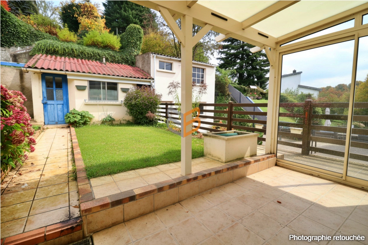 À l’extérieur, profitez d’une agréable terrasse couverte donnant sur un jardin clos, agrémenté d’un cabanon de jardin pratique pour le rangement.