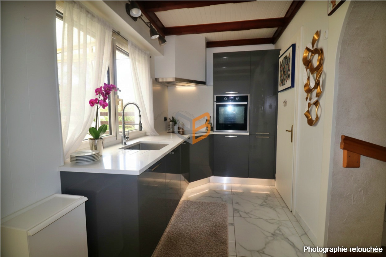 Elle se compose au rez-de-chaussée d’une cuisine, d’une salle d’eau et d’un salon-séjour lumineux.
