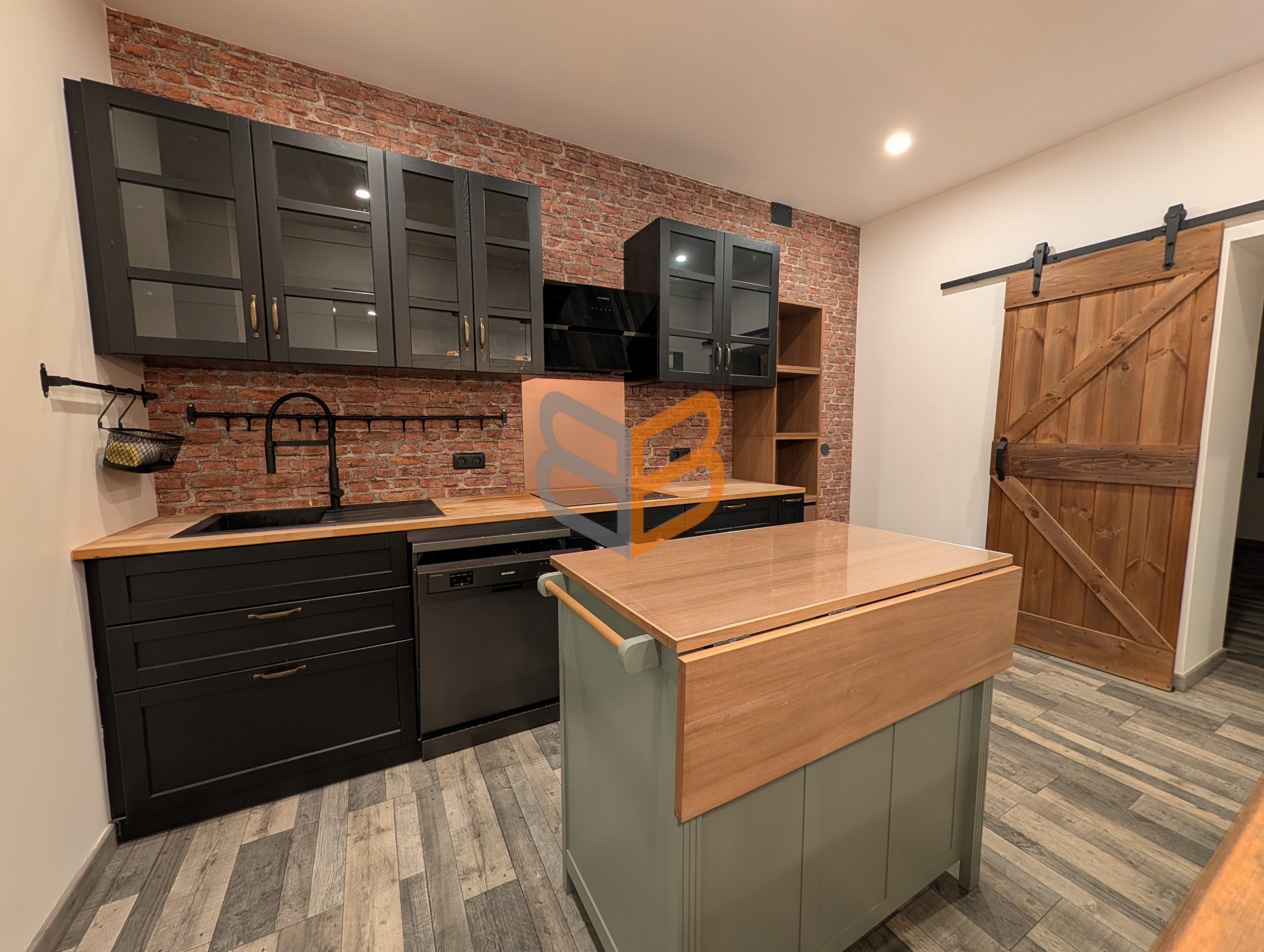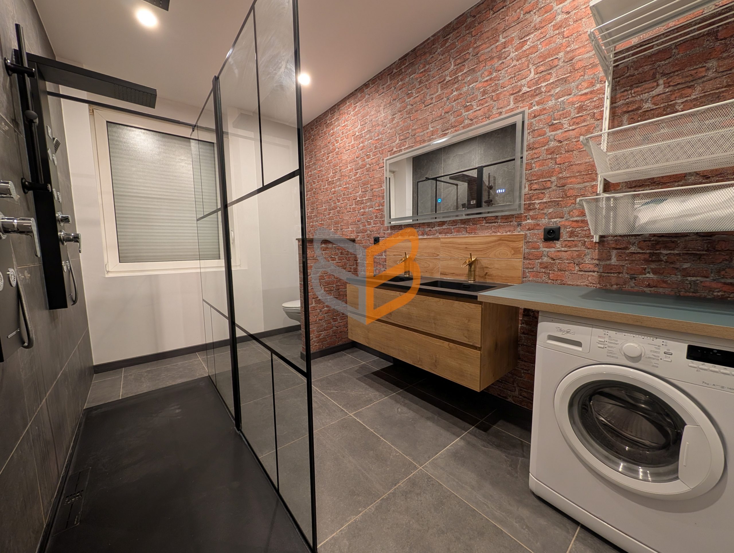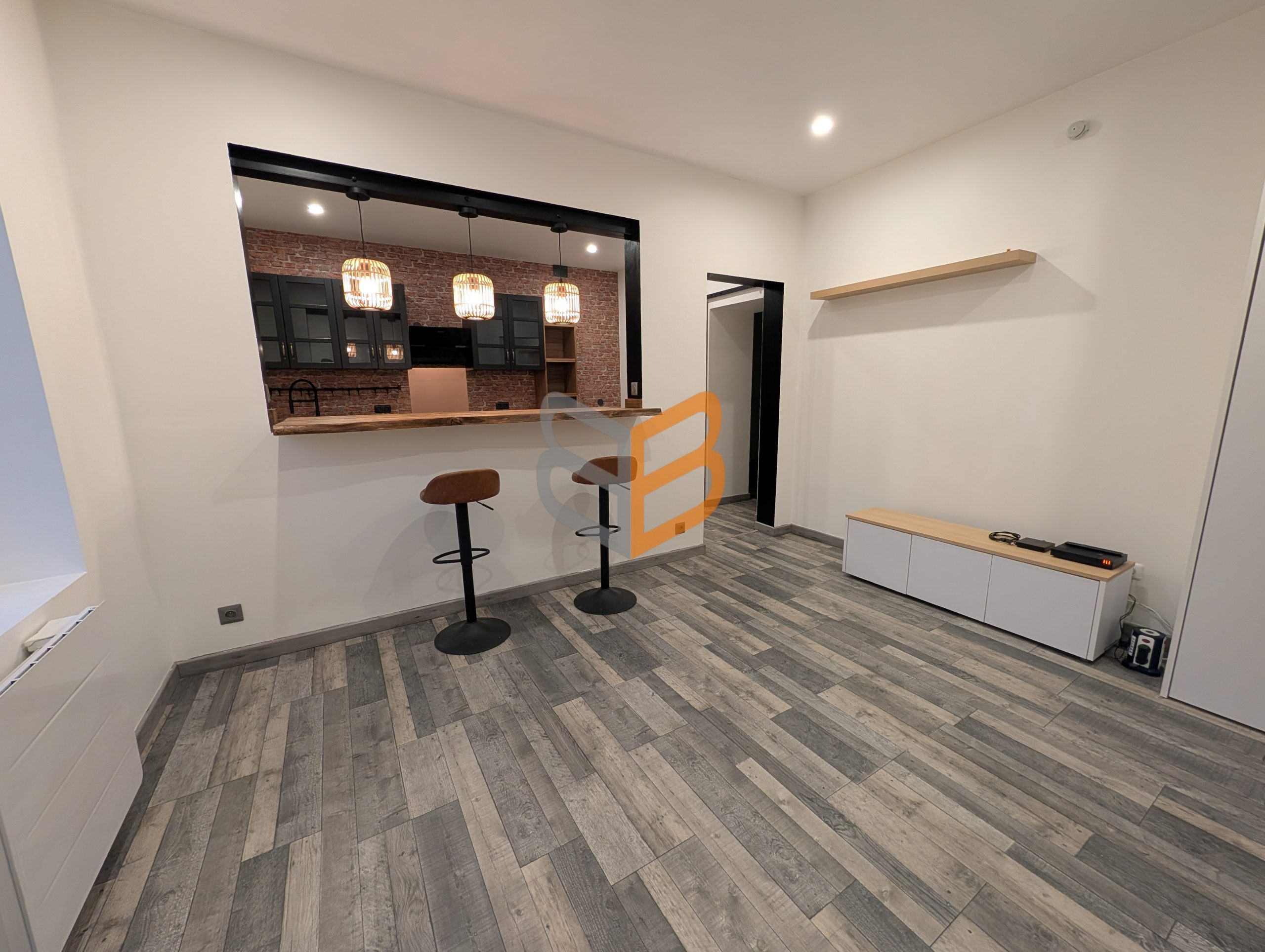 Bel appartement au RDC entièrement refait à neuf, au style industriel moderne, d’environ 50 m² comprenant : séjour lumineux avec cuisine semi-ouverte, 1 chambre, salle d’eau avec WC.