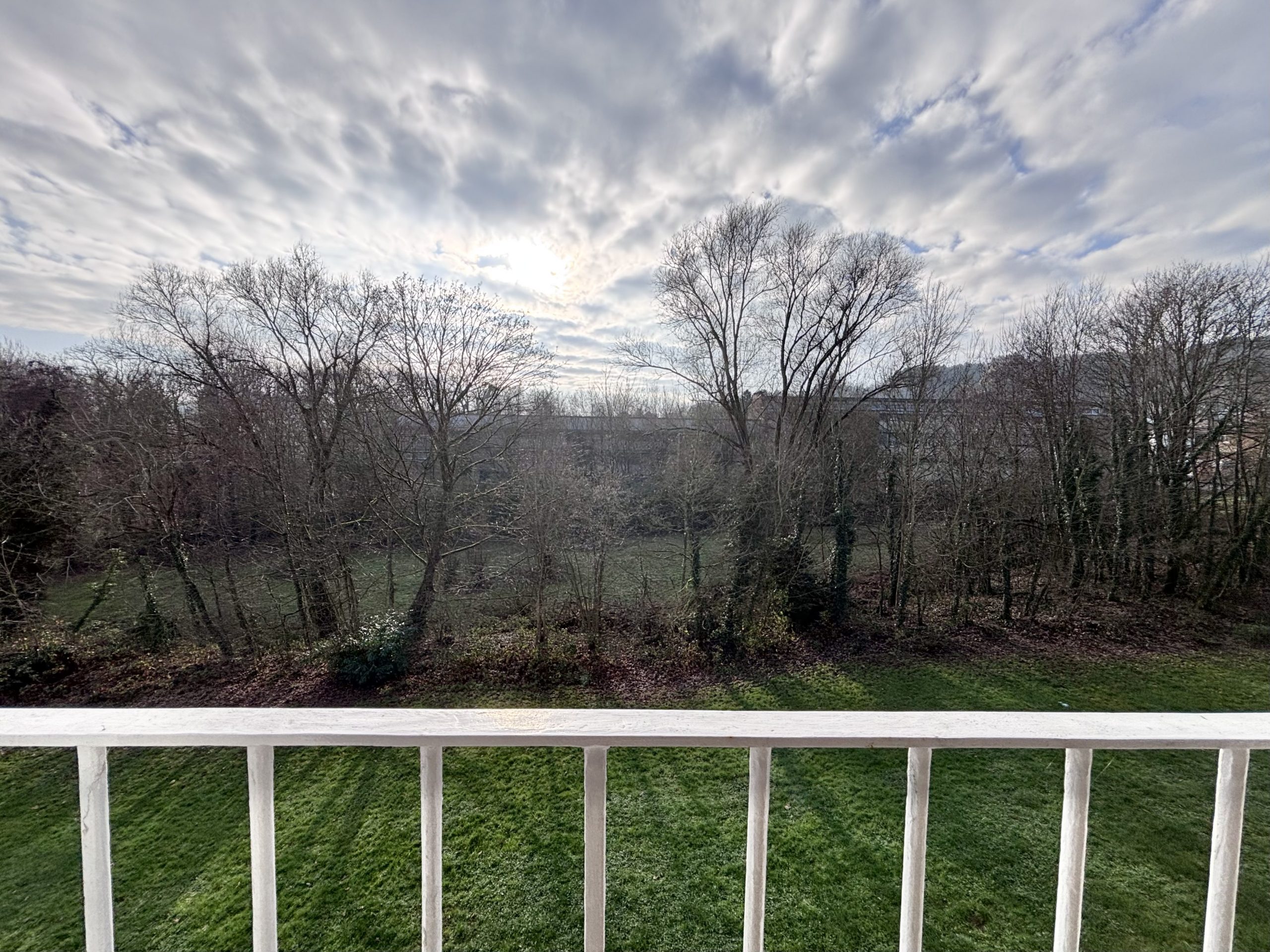Il se compose d’une belle pièce de vie d’environ 32 m² avec cuisine ouverte. Depuis le salon, vous accédez à une loggia d’environ 7 m² (surface non comprise dans la surface habitable), équipée de baies vitrée coulissantes, offrant une vue dégagée sans vis-à-vis sur de la verdure. Deux chambres, une salle de bain avec baignoire et douche, un WC séparé.