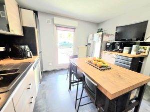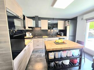 Cuisine entièrement équipée de 14 m², avec nombreux rangements et accès direct à la terrasse.