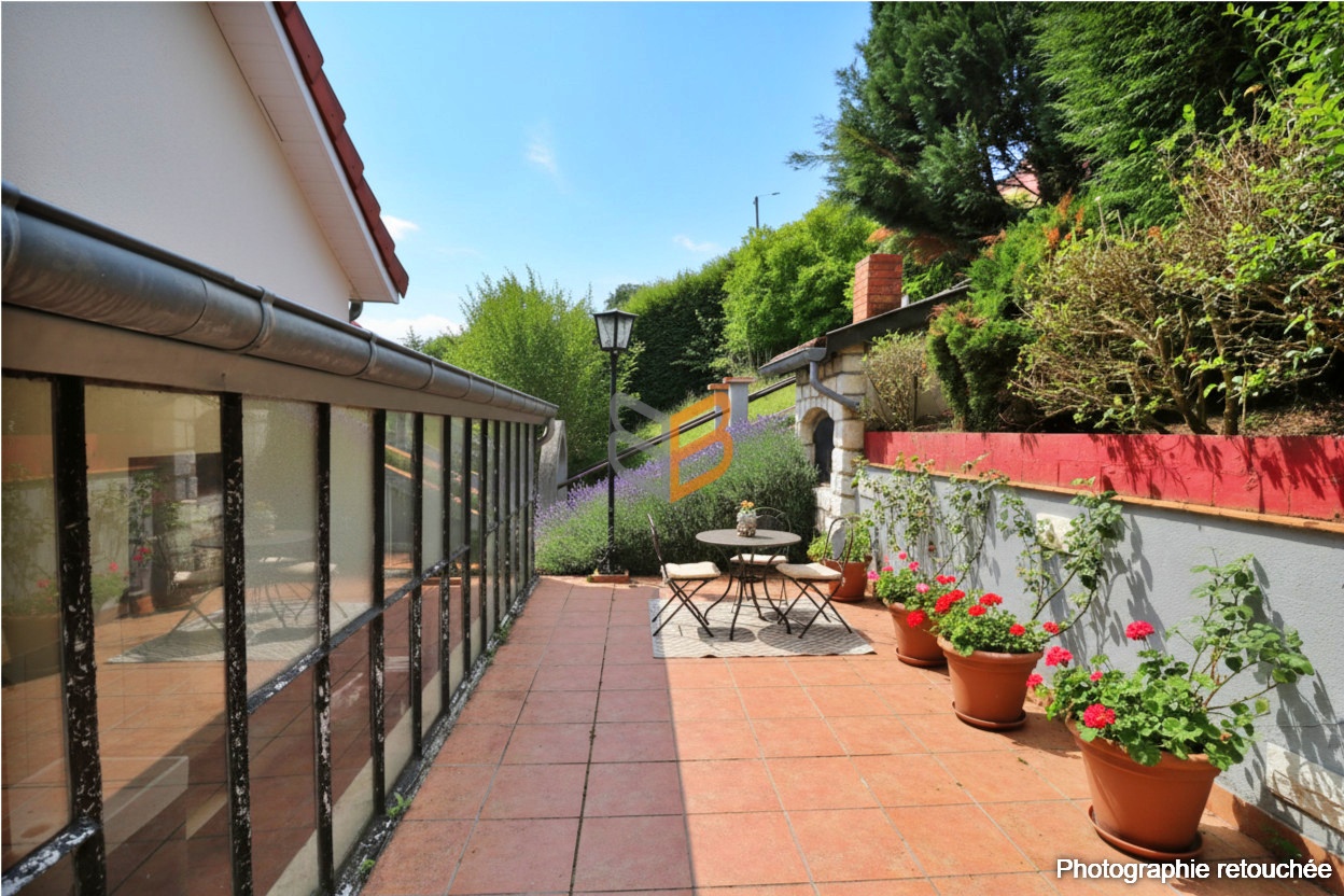 Un garage, une cave avec cuisine d’été, une terrasse et un jardin complètent ce bien, offrant à la fois praticité et confort extérieur.