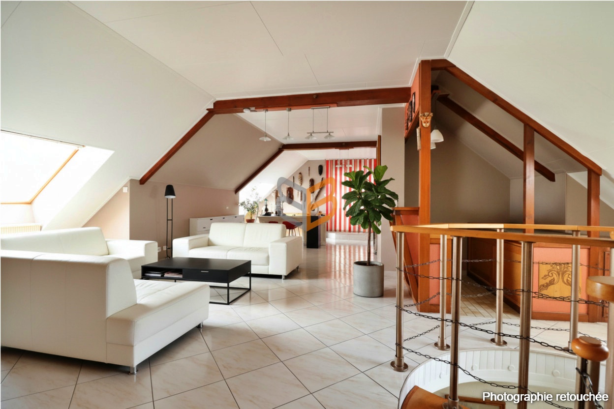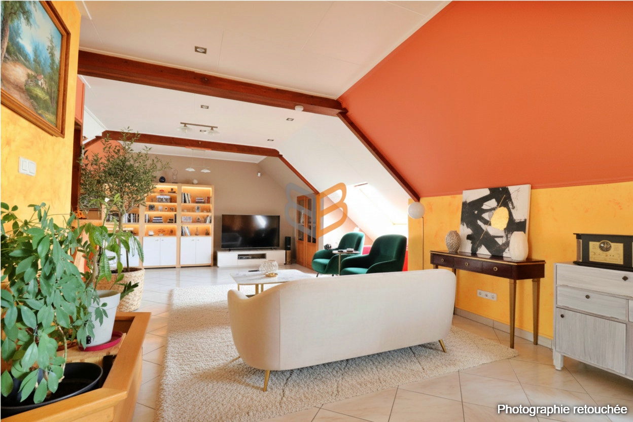 À Kanfen, dans un environnement calme et recherché, venez découvrir cette magnifique maison individuelle d’une surface habitable de plus de 150 m² (loi Carrez) et d’une surface sol de 190 m2 comprenant une loggia et une véranda ! (pour une surface totale comprenant le garage, les sous-sols et buanderie d’environ 300 m2). Edifiée sur un terrain de 9 ares 59 centiares, cette maison spacieuse et lumineuse se compose d’une entrée accueillante desservant une cuisine entièrement équipée, d’une grande pièce à vivre chaleureuse, comprenant un coin salon convivial et un coin bureau.